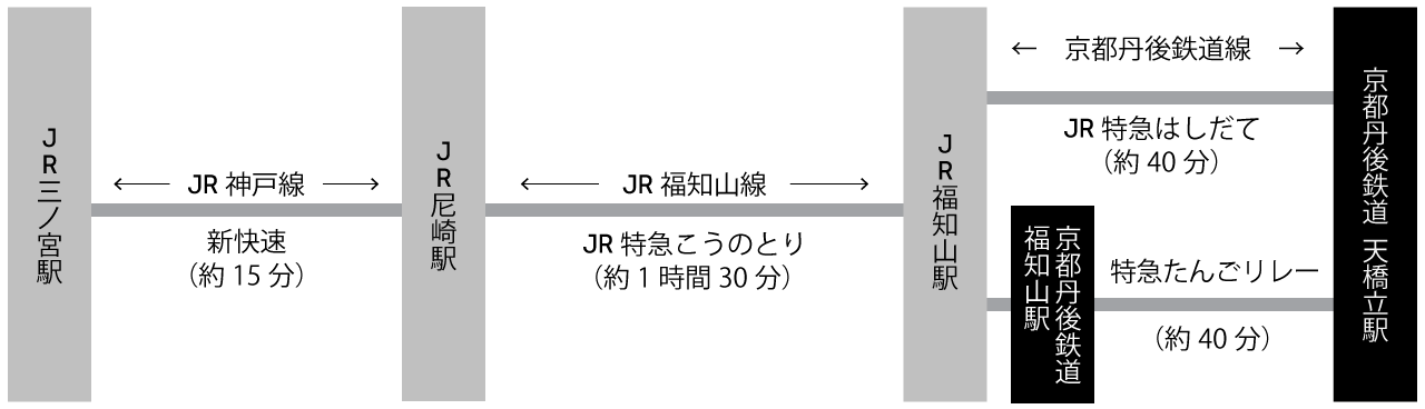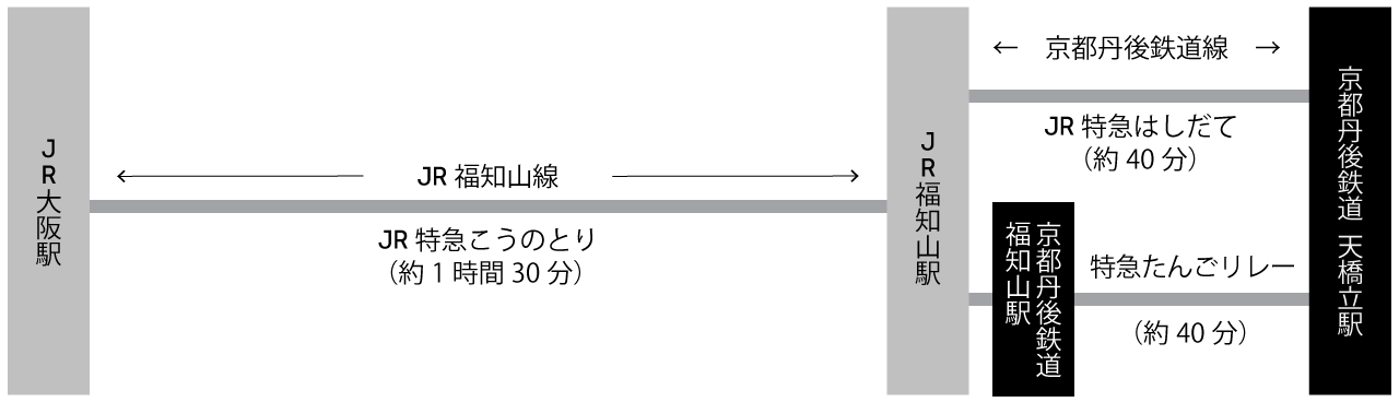 「福知山駅」で 京都丹後鉄道 への乗り換えが必要です。