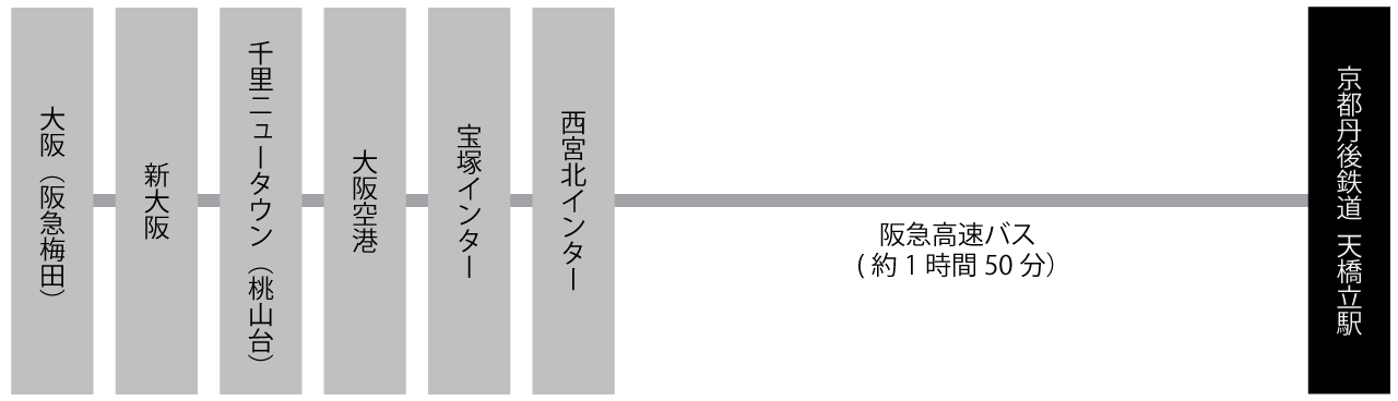 大阪、神戸からは、天橋立方面に直通の高速バスが出ています。